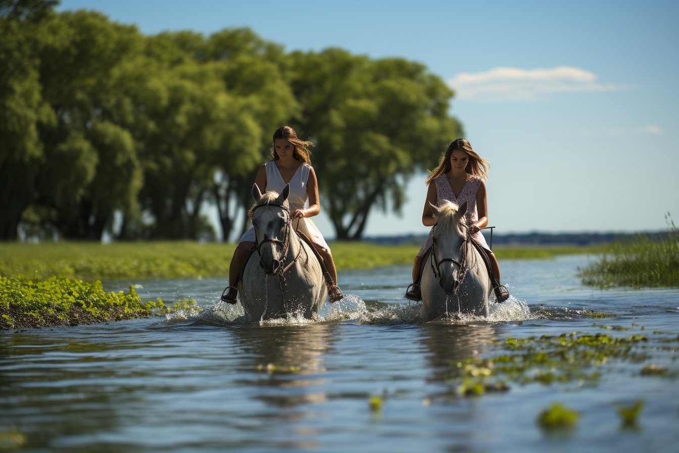 Les cavaliers expérimentés pourront quant à eux se lancer dans des randonnées plus ambitieuses de plusieurs jours, leur permettant de s’immerger pleinement dans la nature camarguaise. Vous aurez ainsi l’opportunité d’explorer les différentes facettes de ce territoire préservé et de vous imprégner de son atmosphère unique.